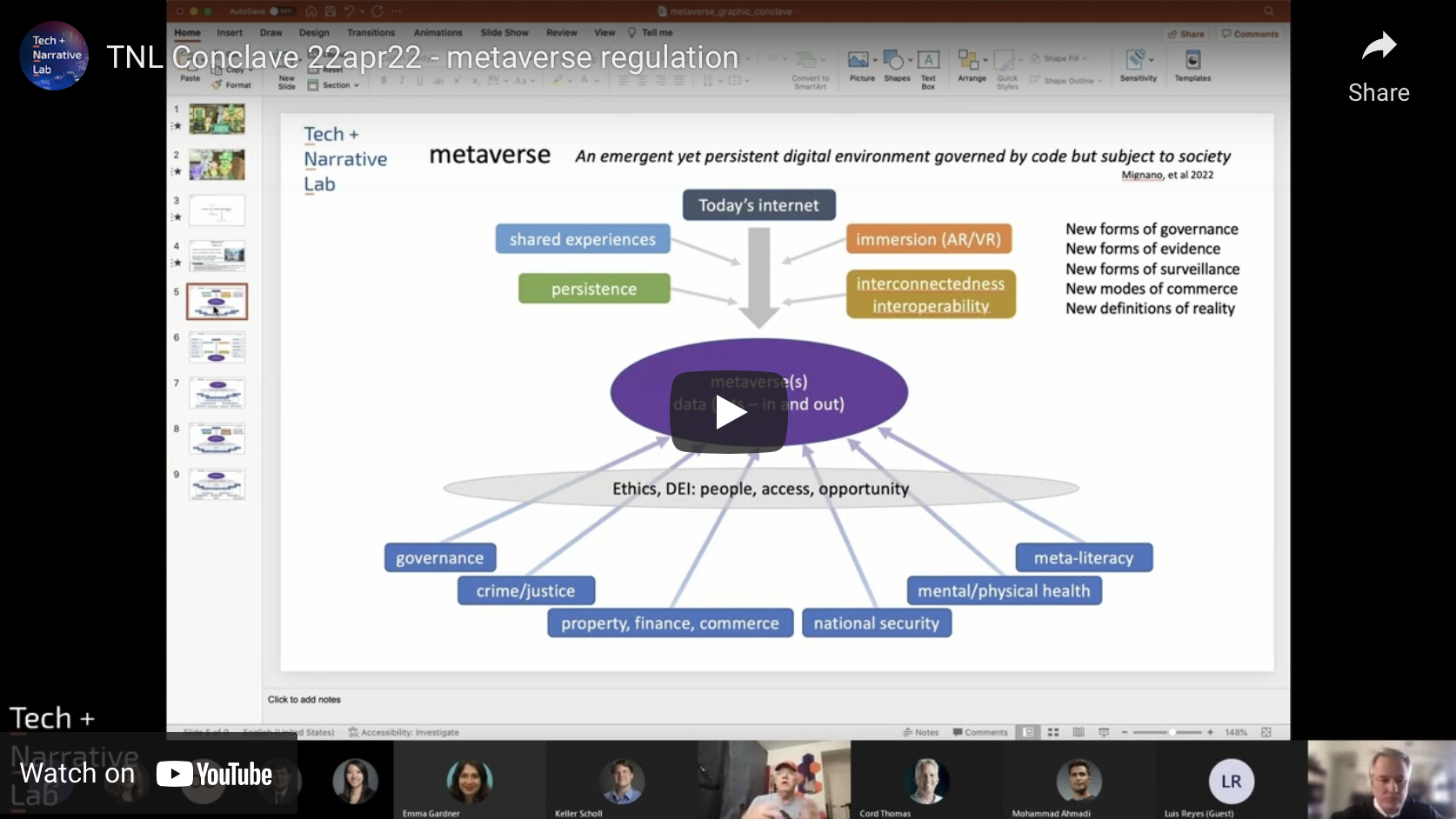 TNL Conclave discussing on some preliminary world-building results around the metaverse, and exploring possible regulation models/approaches. As always, a work in progress..